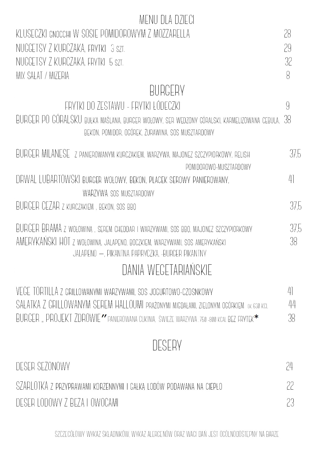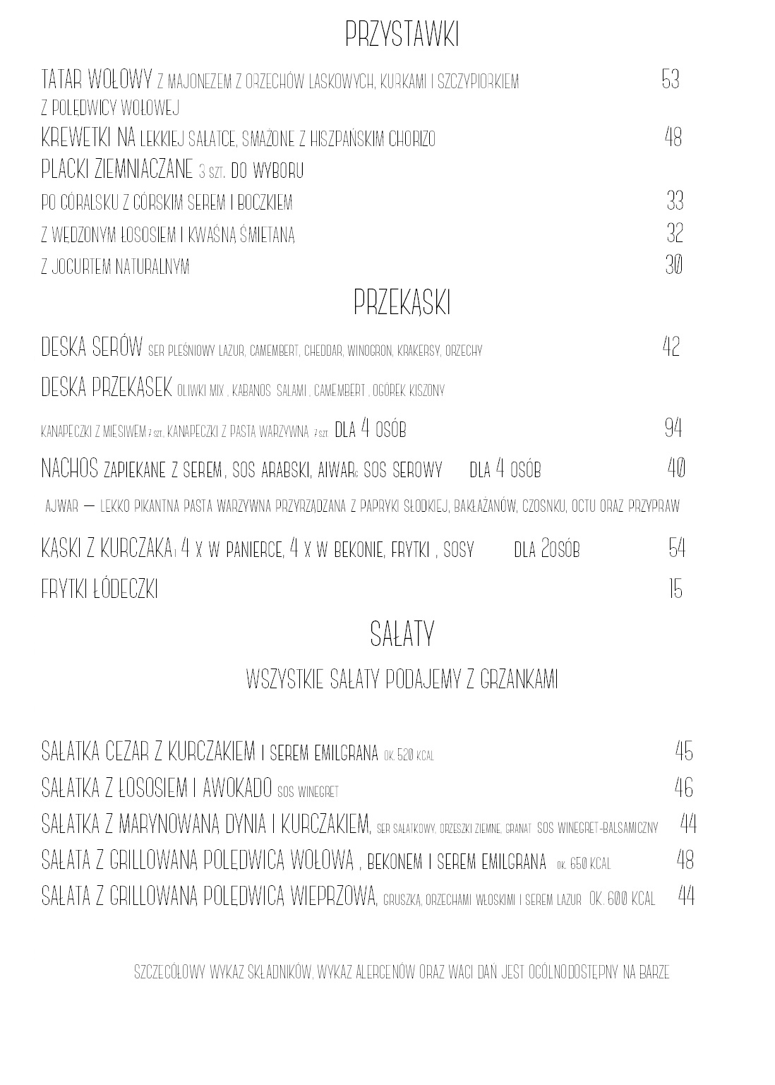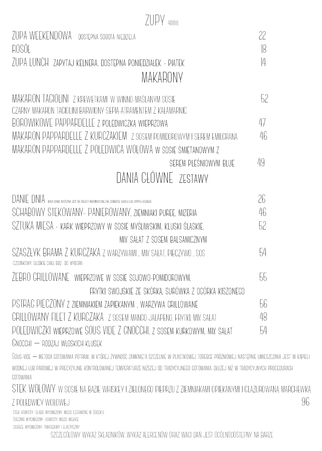 Restauracja słynie z kreatywności kulinarnych, oferując wyjątkowe dania przygotowywane z najświeższych składników. Karta dań jest zróżnicowana, obejmując tradycyjne smaki oraz nowoczesne interpretacje ulubionych potraw.